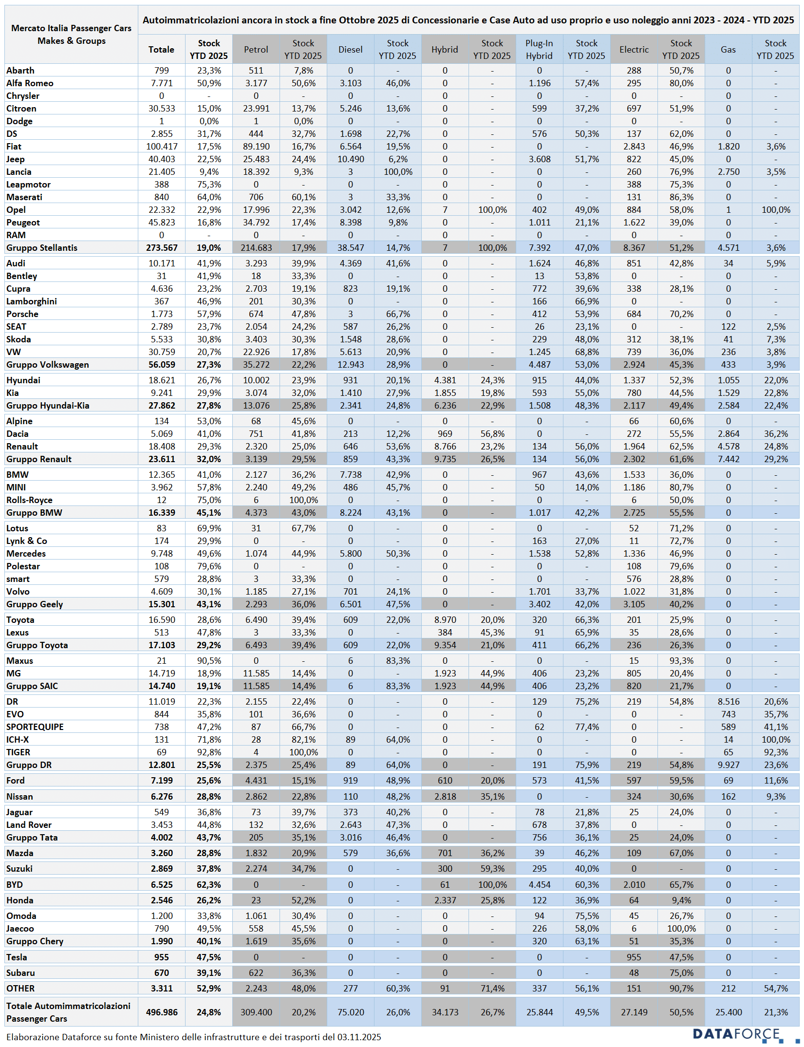 Analisi Stock autoimmatricolazioni PC 2023-ytd 2025 a stock