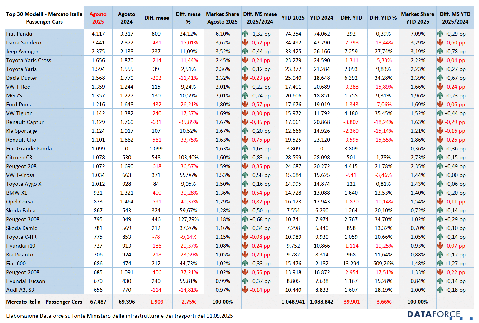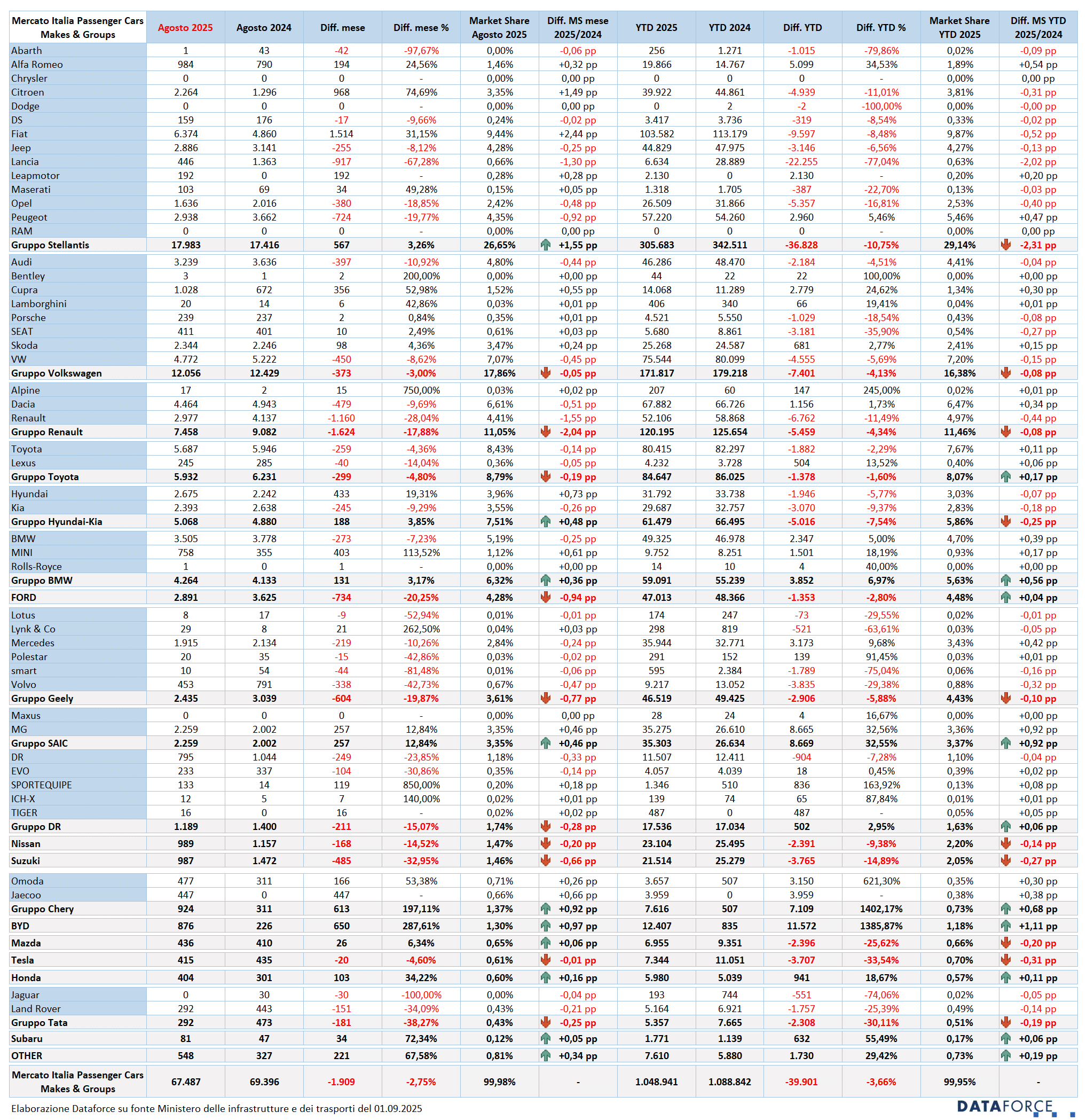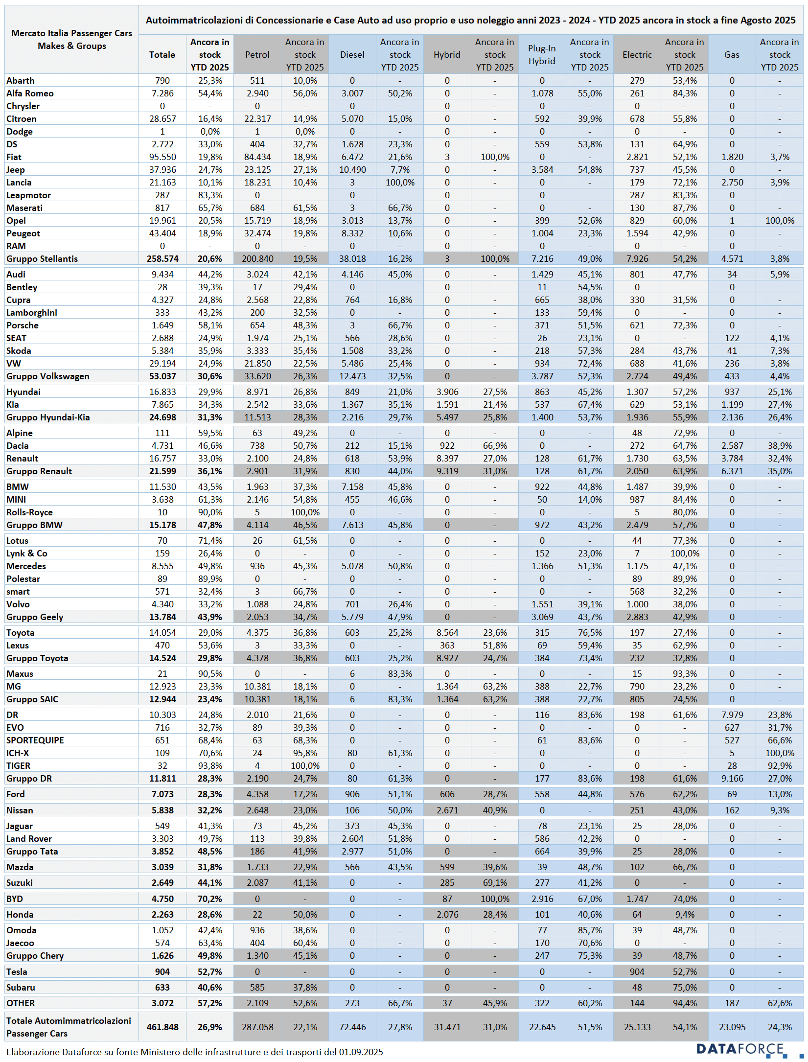 Analisi Stock autoimmatricolazioni PC 2023-ytd 2025 a stock