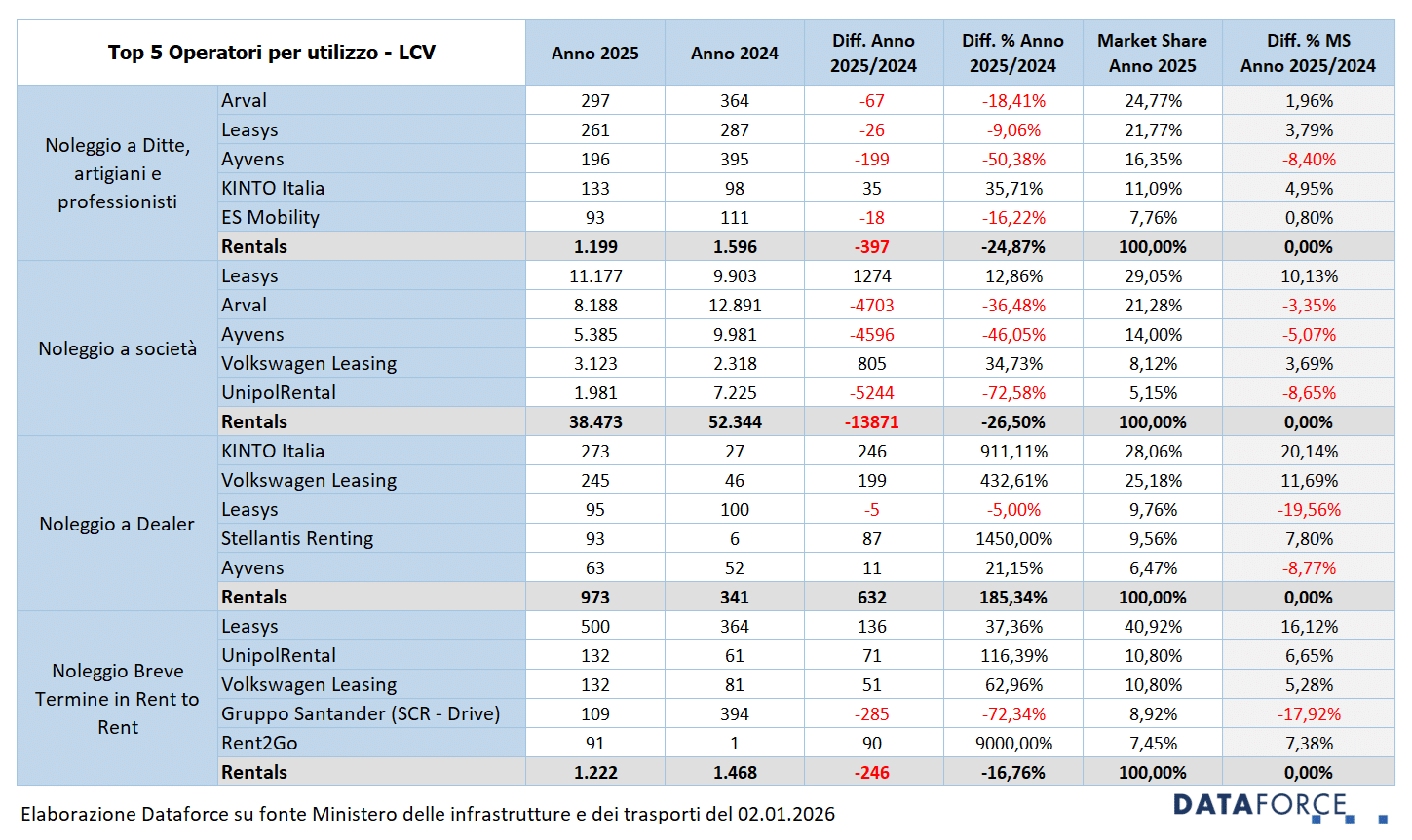 Focus Noleggio - L’ANALISI DEI TOP 5 OPERATORI PER TIPOLOGIA DI UTILIZZATORE - LCV