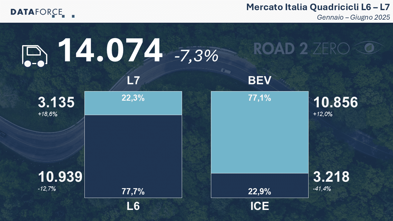 La flessione, tuttavia, non è omogenea: mentre i quadricicli leggeri (L6) segnano una contrazione del -12,7%, con 10.939 immatricolazioni, i quadricicli pesanti (L7) mostrano una crescita del +18,6%, con 3.135 unità. Una dinamica che suggerisce una progressiva maturazione del mercato e una ricalibrazione dell’offerta verso modelli più performanti e adatti a un uso misto urbano ed extraurbano.