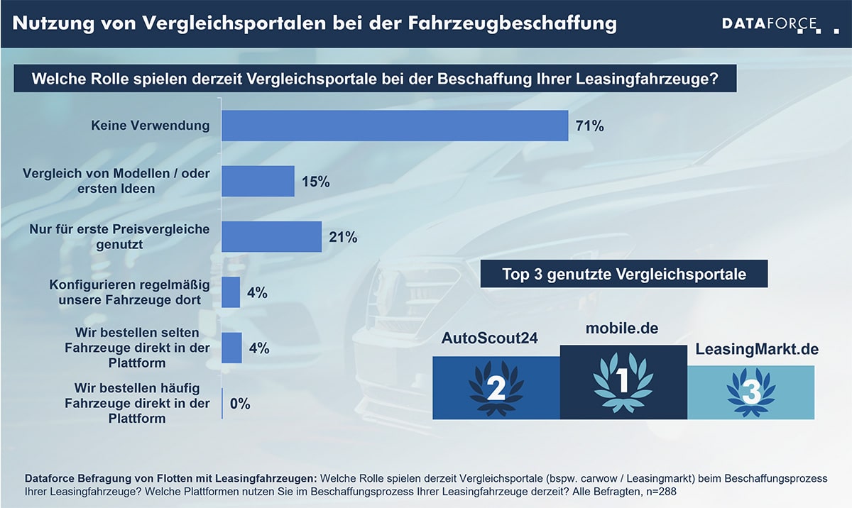 Bei der Fahrzeugbeschaffung setzen derzeit rund 29 Prozent der Fuhrparkverantwortlichen auf Vergleichsportale. Vor allem dienen di [...]